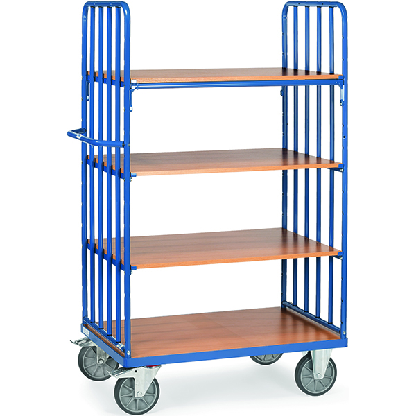 FE-08312 Chariot à plateaux (1 fixe et 3 amovibles) – charge utile 600 kg – 1000 x 700 mm (L x P) surface utile – 1169 x 709 x 1800 mm (LxPxH) dimens. extérieure
