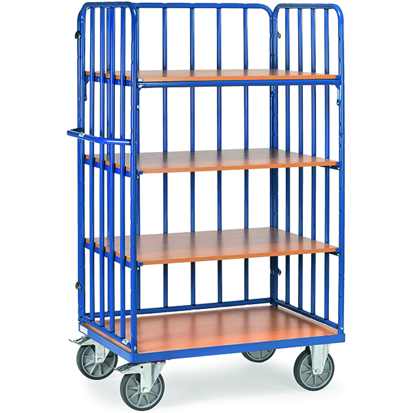 Chariot à plateaux (1 fixe et 3 amovibles) – charge utile 600 kg – 1200 x 800 mm (L x P) surface utile – 1369 x 830 x 1800 mm (LxPxH) dimens. extérieure