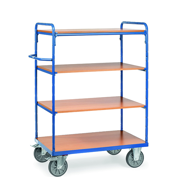 FE-08200 Chariot à plateaux (1 fixe et 3 amovibles) – charge utile 500 kg – 850 x 500 mm (L x P) surface utile – 1019 x 509 x 1511 mm (LxPxH) dimens. extérieure
