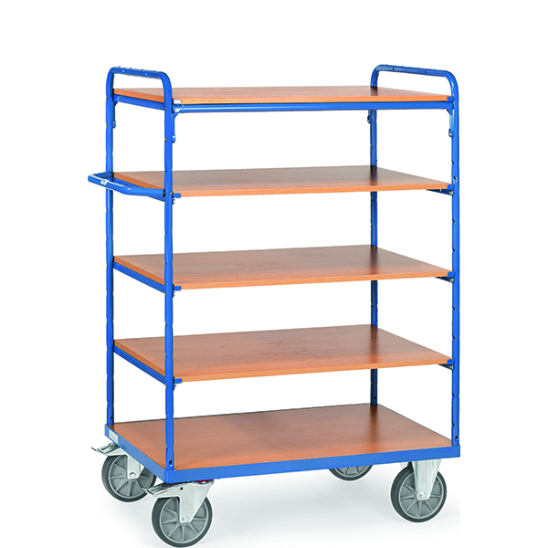 FE-08240 Chariot à plateaux (1 fixe et 4 amovibles) – charge utile 500 kg – 850 x 500 mm (L x l) surface utile – 1019 x 509 x 1511 mm (LxIxH) dimens. extérieure