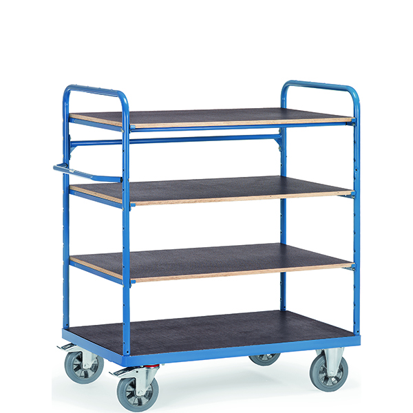 FE-18203 Chariot charge lourde à plateaux (1fixe et 3 amovibles) – charge utile 1200 kg – 1200 x 800 mm (L x l) surface utile – 1373 x 800 x 1583 mm (LxIxH) dimens. extérieure