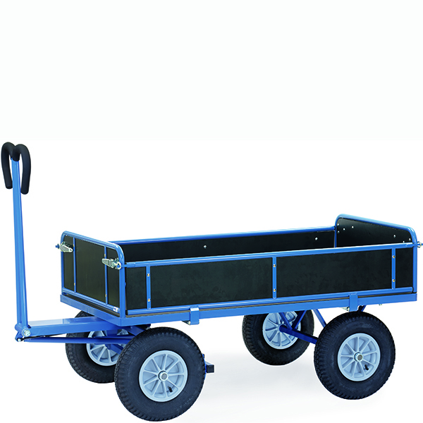 Char à bras avec ridelles et oeillet de traction – charge 1000 kg – 1140 x 740 mm(L x P) dimensions utiles – 1560 x 825 x 1200 mm (LxPxH) dim. extérieures