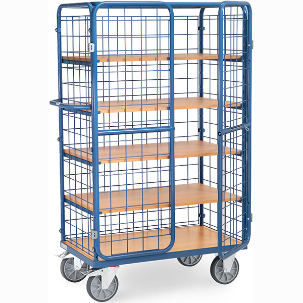 FE-08583-3DE Chariot à plateaux avec portes et toit en treillis métallique – charge utile max. 600 kg – 1200 x 800 mm (LxP) surface utile