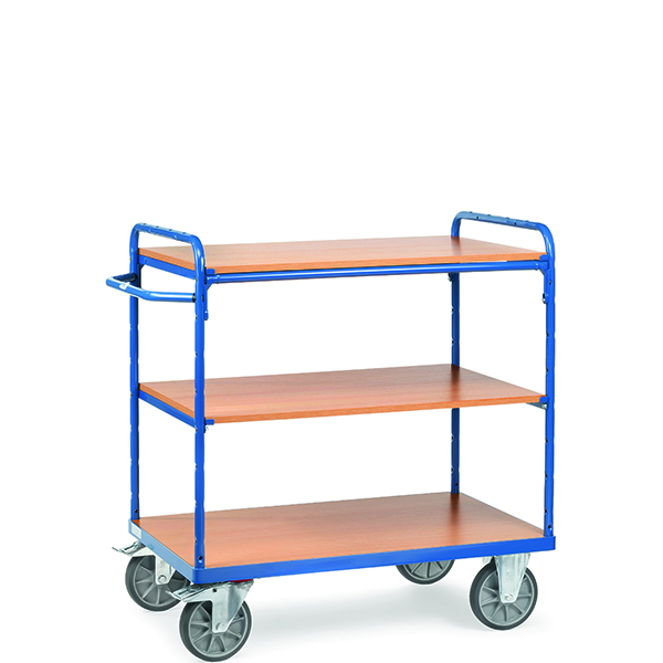FE-08100 Chariot à plateaux (1 fixe et 2 amovibles) – charge utile 500 kg – 850 x 500 mm (L x l) surface utile – 1019 x 509 x 1111 mm (LxIxH) dimens. extérieure