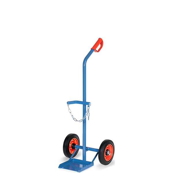 FE-51101 Diable porte-bouteilles avec roues en caoutchouc – charge utile 100 kg – pour 1 bouteille en acier à 20, 40 ou 50 litres, Ø 204-229 mm – 1240 x 500 mm (H x L) dimens. extérieure