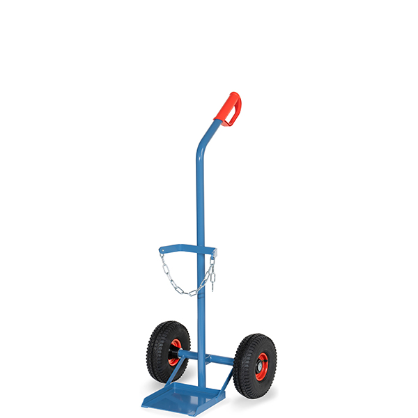 FE-51102 Diable porte-bouteilles avec roues gonflables – charge utile 100 kg – pour 1 bouteille en acier à 20, 40 ou 50 litres, Ø 204-229 mm – 1240 x 510 mm (H x L) dimens. extérieure