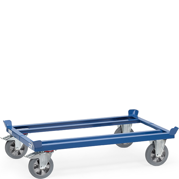 FE-22811 Rouleur de palettes avec roues en caoutchouc élastique – charge max.1200 kg – 1210 x 810 mm (LxP) dimensions utiles – 1255 x 855 x 329 mm (LxPxH) dim. extérieures