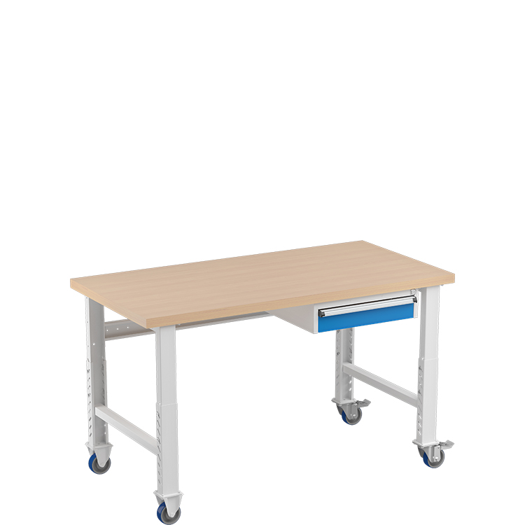 Table de travail mobile avec 1 tiroir – charge 500 kg (charge uniformément répartie) – 2000 x 750 mm (L x l) surface utile – plateau multiplex ep. 40 mm, résistant aux éclaboussures,
