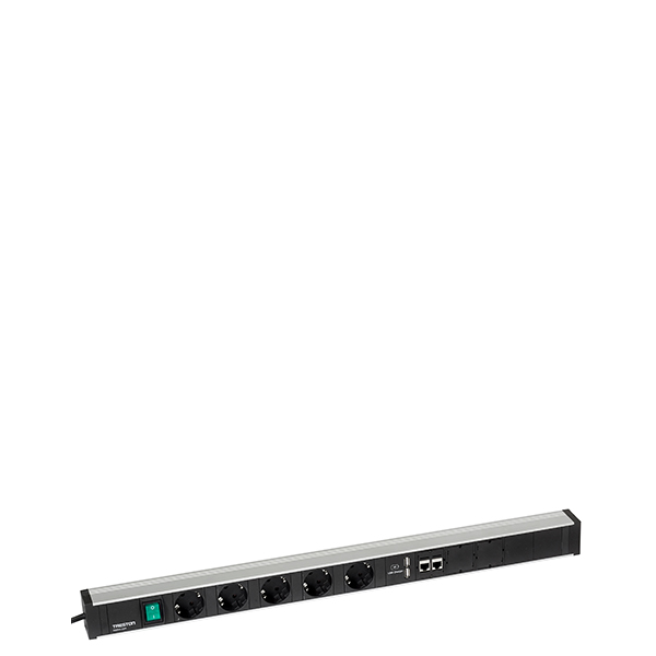 TR-TPR7-003-CH Distribution électrique pour établi Treston – Longuer 683 mm (44 x 52 mm PxH) – 5 prises Suisse T13 (10A)- – 2 connecteurs données CAT6A